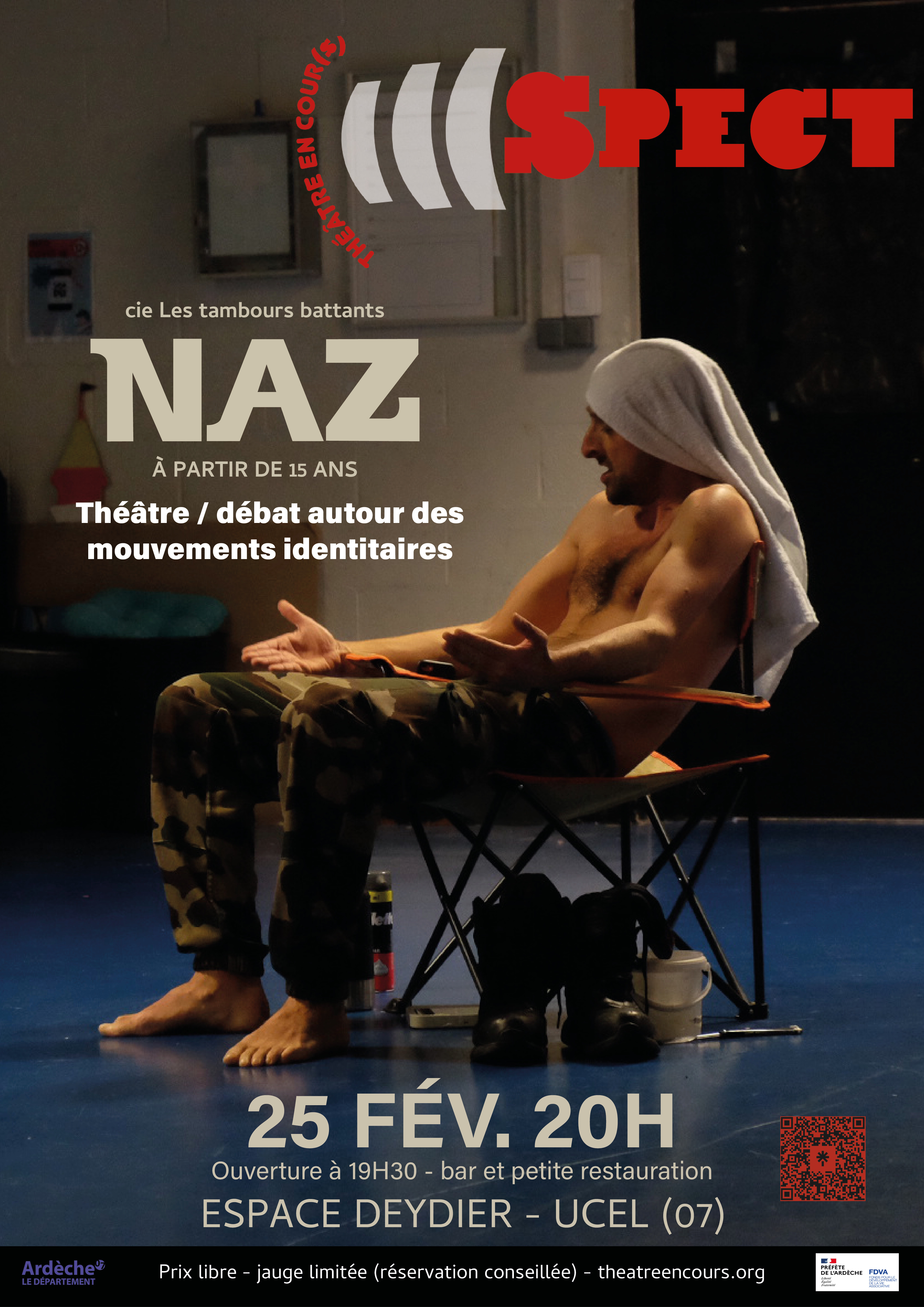 NAZ vous propose d'entrer dans l'intimité d'un Naz, néo-nazi identitaire. NAZ, en nous montrant la tentation du péril xénophobe, questionne nos identités, la construction de nos appartenances, et notre rapport aux racines. Partager, confronter, rencontrer et débattre. NAZ est un outil de déconstruction massif du discours réactionnaire, un dispositif d'éducation populaire par le théâtre.